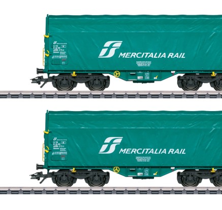 Aus der modernen Bahn nicht wegzudenken sind die langen Schiebeplanenwagen des Typs Ril(n)s. In diesen Wagen können nässeempfindliche Güter jeder Art transportiert und vor allem sehr einfach be- und entladen werden. Dieses Set beinhaltet zwei Wagen mit unterschiedlichen Betribsnummern der Epoche VI.